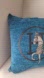 Stylish blue pillow featuring a horse design. Perfect for adding a touch of elegance to any room.