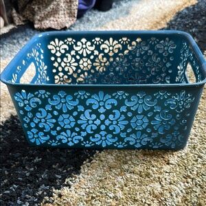 Elegant Navy Blue Storage Bin Decorative Floral Design Plastic Organize Bin NWOT