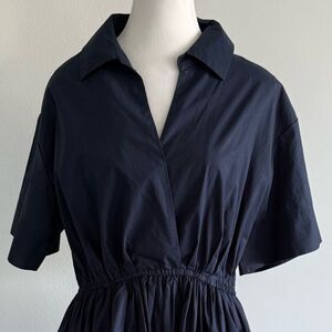This elegant navy dress is perfect for any occasion. Its classic design offers a sophisticated look.