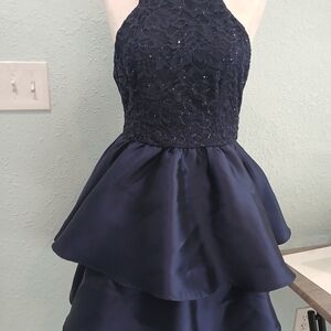 Stunning navy halter dress with a layered skirt B.DARLIN Perfect for special occasions.