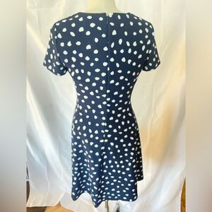 Step out in style with this elegant navy polka dot dress. Perfect for any occasion, this dress combines classic design with modern flair. The navy color adds a touch of sophistication to your wardrobe.