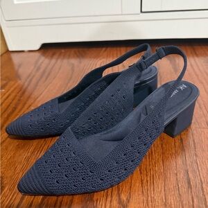 Step out in style with these elegant navy slingback heels. Perfect for any occasion, these shoes offer both comfort and sophistication.