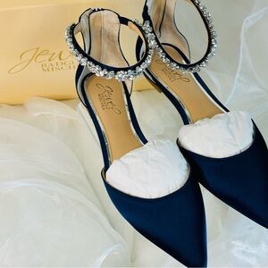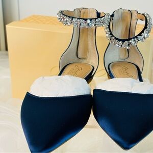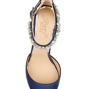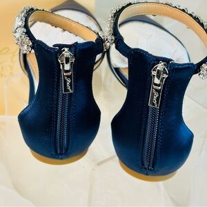 Step out in style with these elegant navy women's shoes featuring a stunning crystal ankle strap. Perfect for any special occasion.