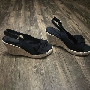 Step out in style with these elegant navy slingback sandals. Perfect for any occasion, these shoes offer both comfort and sophistication. Never worn. 8.5