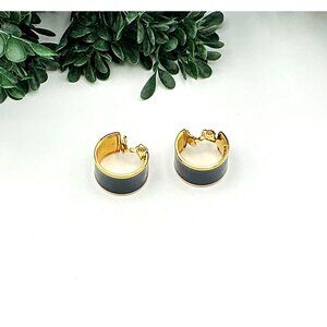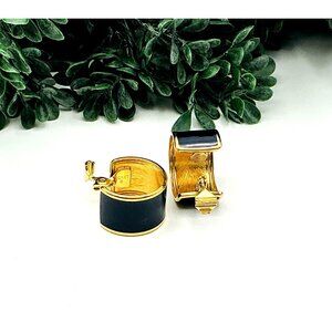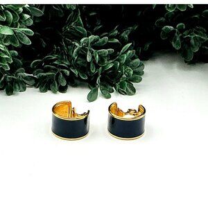 Elegant Navy and Gold Wide Huggie Clip On Hoop Earrings by Monet