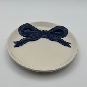 Keep your jewelry organized with this elegant navy and white ceramic trinket dish. Perfect for adding a touch of sophistication to your space.