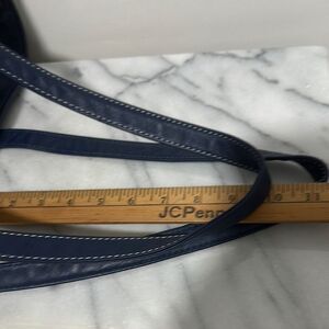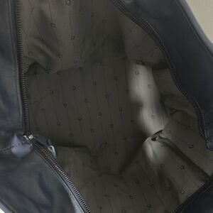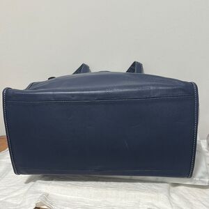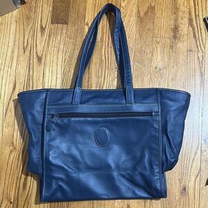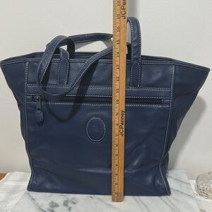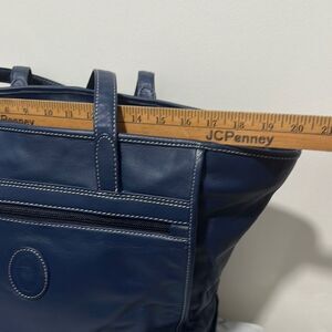 Large blue leather tote with logo