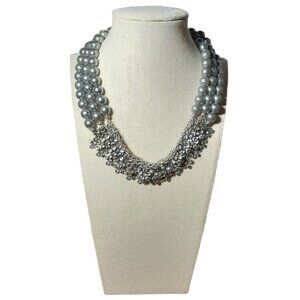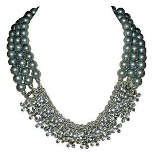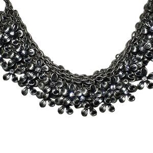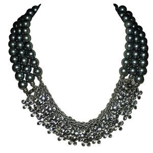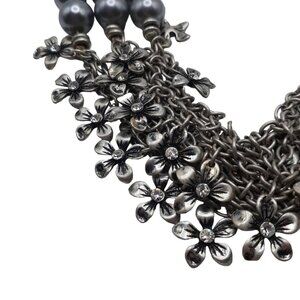 Elegant Necklace 3 Strand Chain Silver-Tone Beads with Rhinestone and Daisies