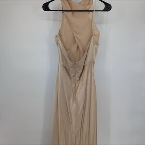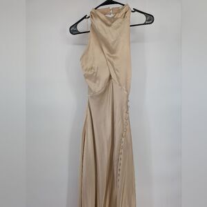 This elegant cream halter dress features a sophisticated design perfect for any special occasion. The luxurious fabric and flattering silhouette make it a must-have addition to your wardrobe.