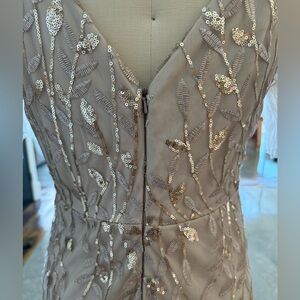 Sequins Nude Tan maxi dress with a side opening, padding in the front, and a zipper in the back. NWOT. Excellent condition.