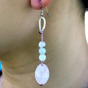 Elegant Oblong Rose Quartz Gemstone Earrings