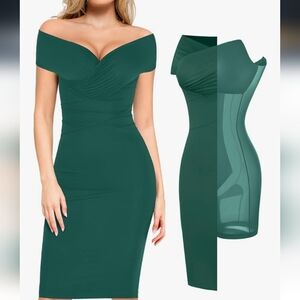 Elegant Off-Shoulder Green Dress With Built In Shapewear New