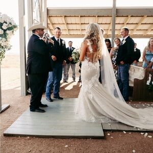 I am 5’6 and was wearing 3in heels. This splurge was completely worth it. I felt gorgeous . Wearing it was a dream come true! There was nothing else that compared to it at a lower price. I hope someone else get to enjoy it, and feel as beautiful as I did wearing it