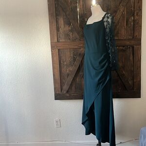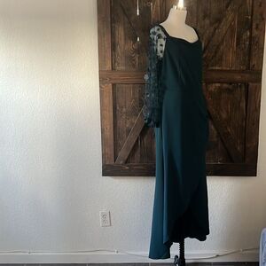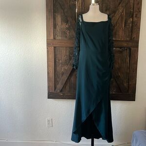 Features: Women's Formal Dress, Party Dresses, Bodycon Dresses for Women, Drop Shoulder, Sheer Mesh Puff Sleeve (Floral Details on Sleeves), Ruched Side, High Waist, Wrap Front with Split Hem, Classic Solid Color, Bodycon , length below the ankle, visible zipper on the back.