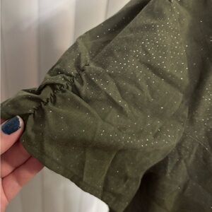 Elevate your wardrobe with this elegant olive button-down shirt. Featuring a classic collar and subtle detailing, it's perfect for any occasion.