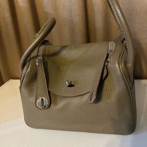 This stylish olive green leather handbag is perfect for any occasion. Its sleek design and high-quality material make it a must-have accessory.