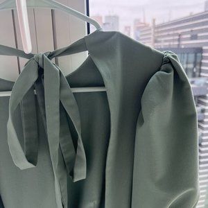 Elegant Olive Green Mini Dress Ope Back in S