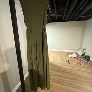 Step out in style with this elegant olive green jumpsuit. Perfect for any occasion, this dress offers a flattering fit and timeless design.
