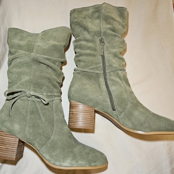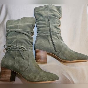 Elevate your wardrobe with these elegant olive suede heeled boots. Perfect for adding a touch of sophistication to any outfit. Never worn!