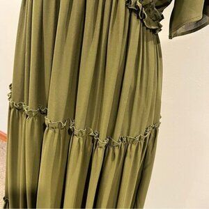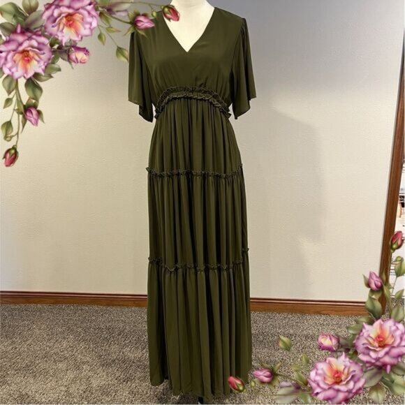Step out in style with this elegant olive green maxi dress. Perfect for any occasion, this dress offers a flattering fit and a sophisticated look.