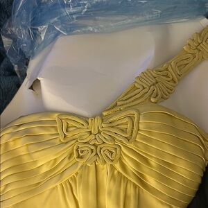 Stunning yellow evening gown with a one-shoulder design from BCBG MaxAzria. Perfect for formal occasions.