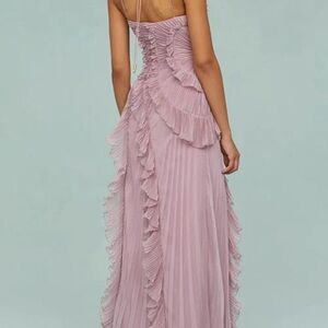 Make a statement with this elegant one shoulder ruffle dress. The light purple color adds a sophisticated touch, perfect for any event. Purchased online and cannot return. Never worn, brand new in bag it arrived in, no tags were attached. Fits more of a 6/8 size