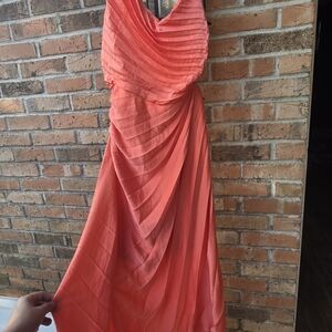 Step out in style with this elegant one-shoulder coral dress. Perfect for any occasion, its flowing design adds a touch of sophistication to your wardrobe.