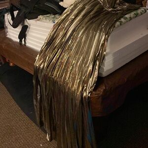 This elegant one-shoulder dress features a stunning gold and black design, perfect for any special occasion. The unique pattern and flattering fit make it a standout piece in your wardrobe.
