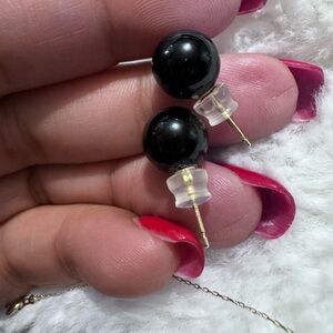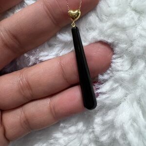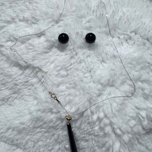 Elegant Onyx Pendant Necklace and Earrings Set in 18k Japan Gold