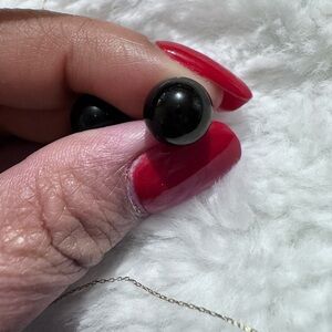 Chic Onyx pendant necklace paired with matching earrings. Perfect for any occasion.