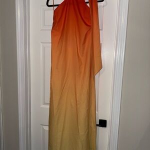 Step out in style with this stunning orange ombre one-shoulder dress. Perfect for any occasion, this dress offers a unique blend of elegance and modern flair.
