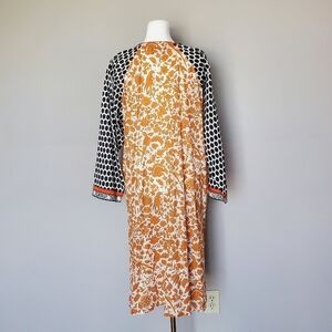 Elevate your wardrobe with this elegant women's tunic featuring a striking orange and black pattern. Ideal for both casual and professional settings.