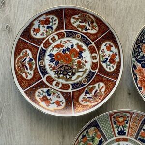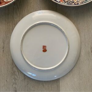 Elegant Orange and Blue Chinese Dinnerware Set of 3 chinoiserie plates home
