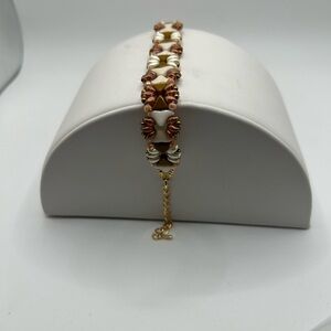 Add a touch of elegance with this stunning orange and gold beaded bracelet. Perfect for any occasion.No returns liquidation sale