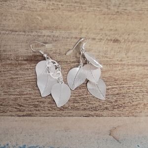 Elegant Oval 2 tier Silver tone Necklace and leaf motif pierced Earring Set