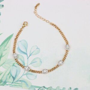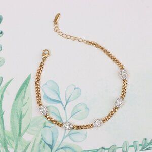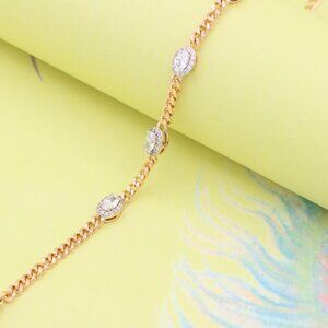 Add timeless elegance to your collection with this stunning rose gold bracelet. Crafted from gold plated high-quality brass, the design features brilliant oval-cut stones set on a sleek chain.