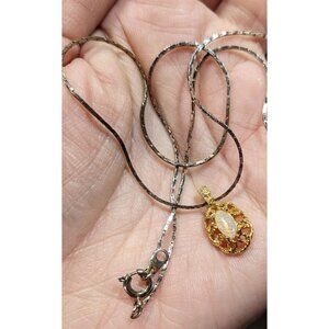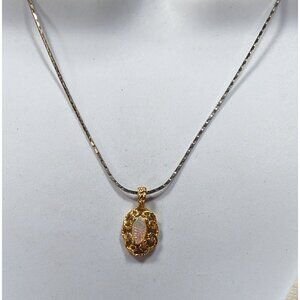 Elegant Oval Faux Opal Gold Tone Pendant Necklace