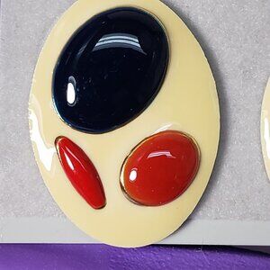 Elevate your style with these Women's Stunning Oval Black, Red & Cream Color Teardrop[ Drop Earrings. The combination of black, red, and tan colors creates a striking, versatile design that effortlessly complements various outfits. The round stud design adds a touch of sophistication and elegance to your ensemble. Crafted with attention to detail, these earrings are perfect for casual and formal occasions. The post-back closure ensures a secure and comfortable fit, allowing you to wear them confidently. Make a statement with these stunning stud drop earrings that showcase your unique sense of style. NWT