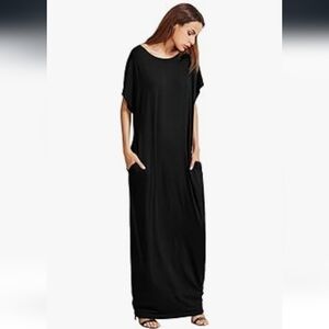 Elegant Oversized Black Maxi Dress With Pockets NWT