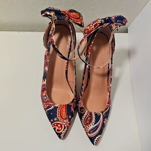 Step out in style with these elegant paisley print women's heels(4.1 inches). Featuring a vibrant mix of colors, these shoes are perfect for any occasion.