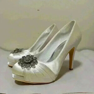 High Heels Pumps Closed-Toe Rhinestoned Satin Wedding Evening Party Shoes Platform Shoes