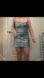 Short elegant teal/greish blue dress featuring a striking white pattern. Perfect for any occasion