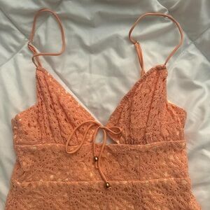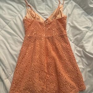 Step out in style with this elegant peach lace dress. Perfect for any occasion, this dress features a flattering silhouette and delicate lace detailing. A must-have addition to your wardrobe.