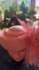 Elegant Peach Pillowbox Hat with large Chiffon Flower