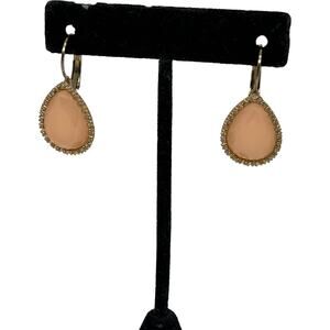 Elegant Peach Teardrop Earrings Textured Gold Frame Statement Drop Dangle