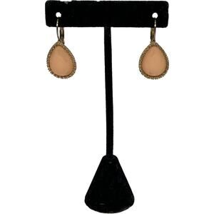 Make a sophisticated statement with these stunning teardrop earrings featuring a luxurious peach cabochon center surrounded by an intricately textured gold-tone frame. These versatile pieces measure exactly 1.25" in length and 0.75" in width, making them the perfect size for both day and evening wear. The leverback closures ensure secure and comfortable wear. The earrings showcase a beautiful combination of soft peach stone against radiant gold-tone metal, with a detailed sunburst texture around the border that catches the light beautifully. In good condition, these earrings show minimal wear and maintain their elegant appearance. Style these timeless pieces with everything from a casual white blouse to an evening gown - they transition seamlessly from office to special occasions. The neutral peach tone complements all skin tones and pairs especially well with spring and summer wardrobes, though their classic design makes them suitable year-round.