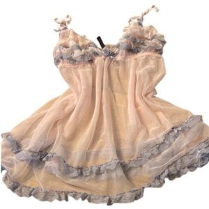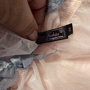 Indulge in elegance with this beautiful pink and gray lace babydoll. Perfect for a touch of luxury in your sleepwear collection.