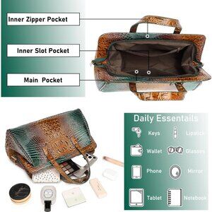 Features: Crafted from high-quality vegan leather that’s waterproof, scratch-resistant, and super easy to wipe clean. It features an upgraded gold zipper for durability and a soft lining to protect your belongings. The multi-pocket design includes 2 zipper pockets, 2 main compartments, and 5 slip pockets, offering plenty of space and organization options for your everyday essentials like phone, keys, wallet, or a small tablet.