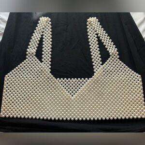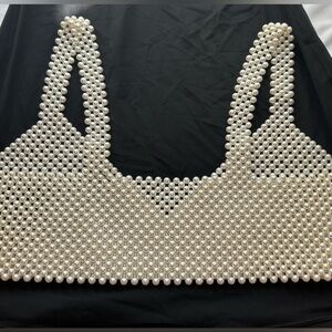 Elevate your look with this chic pearl beaded crop top. Its intricate design adds a touch of sophistication to any outfit, making it perfect for special occasions or a night out. Pair it with high-waisted jeans or a sleek skirt to complete the ensemble.