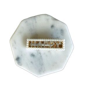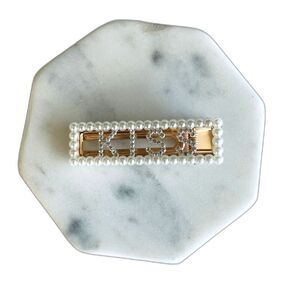 Elegant and Beautiful Pearl Hair Clips are made of Acrylic Pearl with a decorative word in center, and gold alligator clip on backside. Great for both Women and Girls.